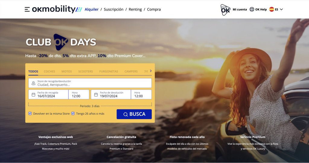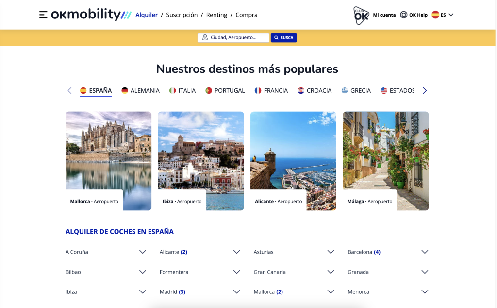 - Cobertura Amplia: Con ubicaciones en toda España y Europa, puedes encontrar un coche de OK Mobility dondequiera que vayas.