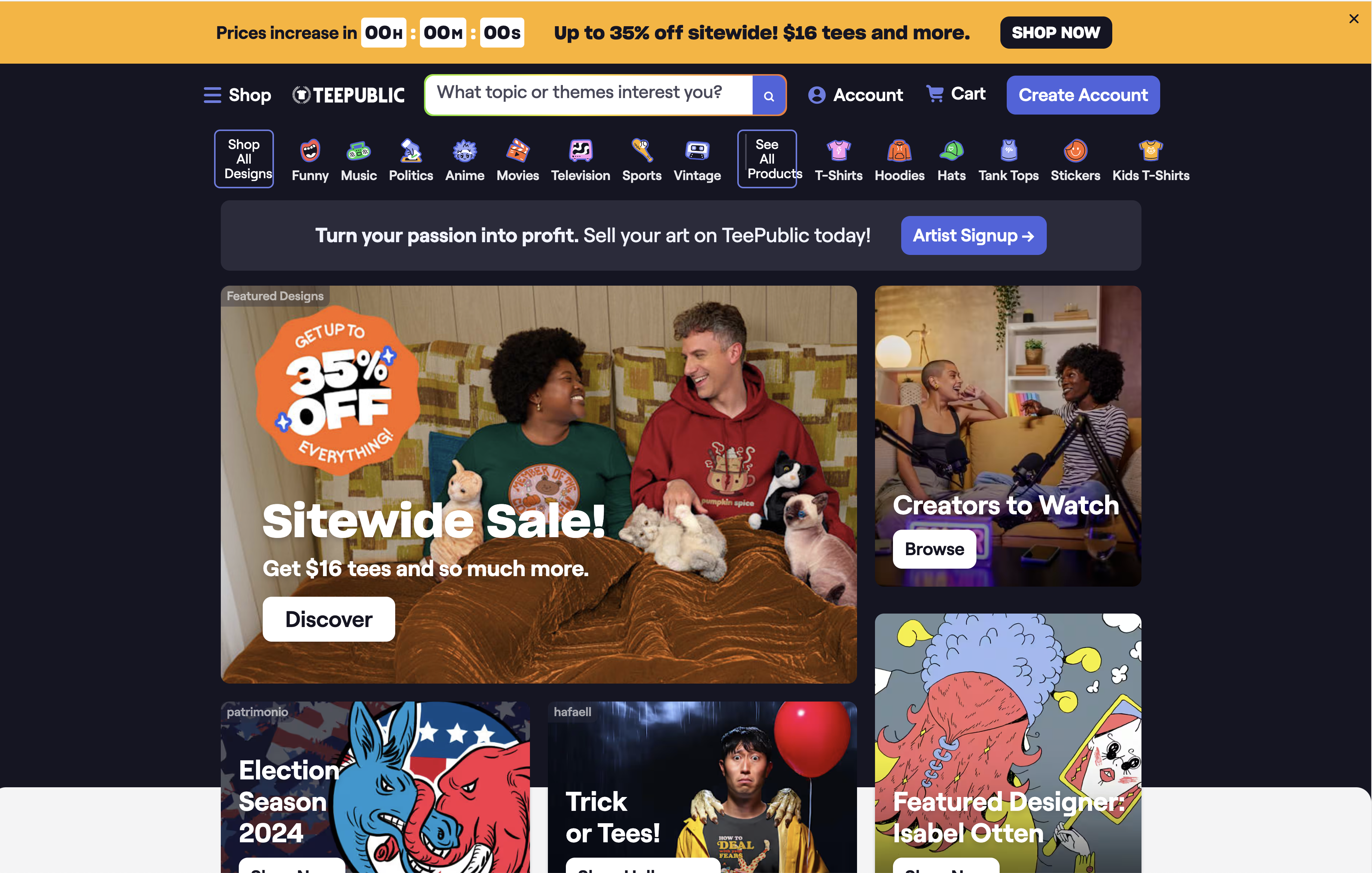 At TeePublic, you’ll discover a shopping experience that celebrates individuality and creativity. Here are a few reasons why TeePublic is the go-to choice for custom apparel and art:
