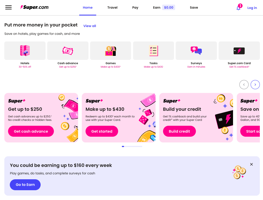 In addition to savings on products and travel, Super.com provides financial solutions tailored to help users manage their money effectively. With tools for budgeting, credit building, and loan options, Super.com is there to support you on your financial journey, offering guidance and options designed to fit your goals.